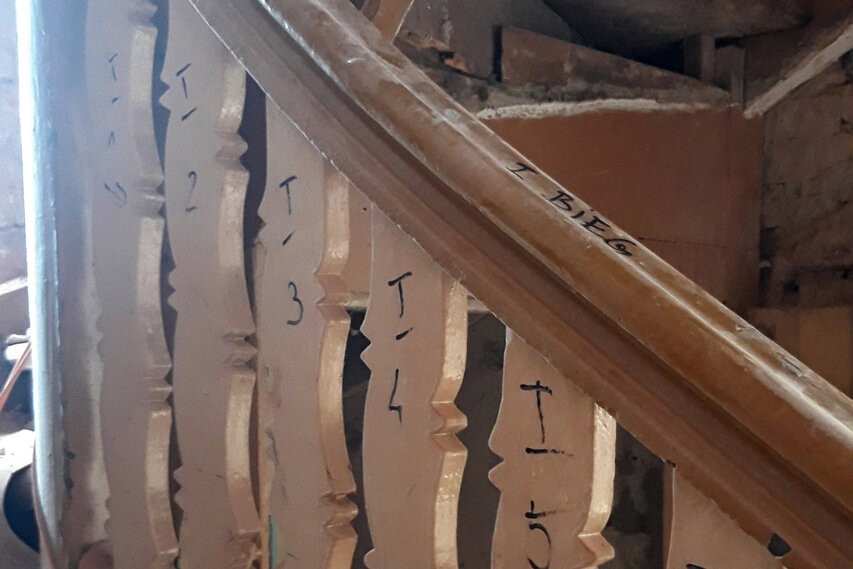 Na zlecenie prywatnego Inwestora, wykonujemy renowację i modernizację drewnianej klatki schodowej w budynku z 1920 roku. Konstrukcja schodów wykonana będzie z drewna sosnowego, sosnowe balustrady zostaną poddane renowacji, a nowe stopnice przygotujemy z jesionu.