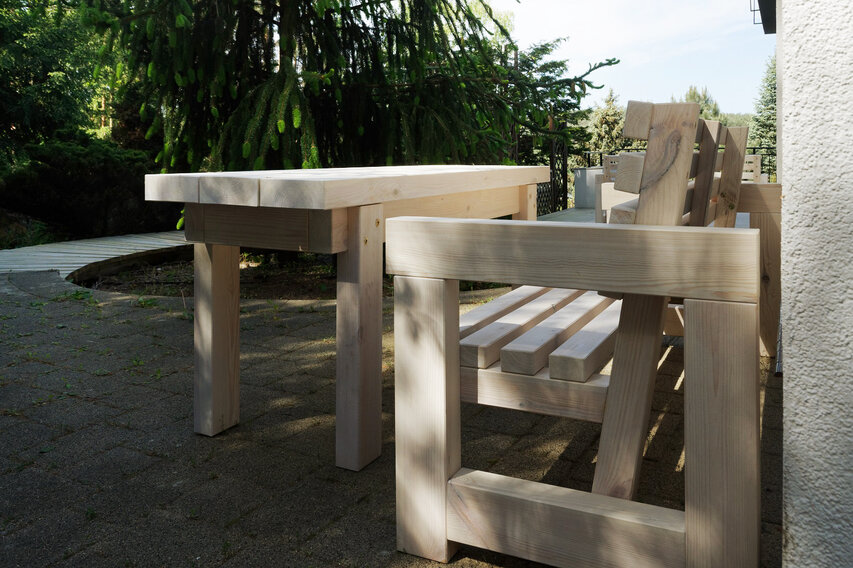Na indywidualne zamówienie wykonaliśmy komplet mebli ogrodowych.
