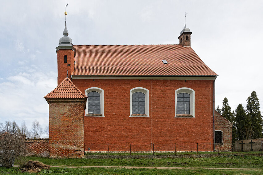 Prace wykonano w 2017 roku. Barokowy budynek kościoła został wzniesiony, na miejscu wcześniejszej kaplicy w latach 1752-1753. Konsekracji kościoła i nadania tytułu Świętego Krzyża i Matki Bożej Bolesnej dokonał około roku 1775, biskup warmiński Ignacy Krasicki, znany poeta i publicysta, ważny przedstawiciel polskiego oświecenia.